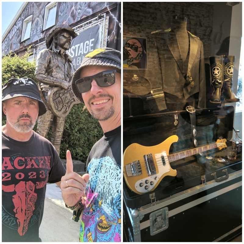 Sétánk alkalmával az egész főutcát végig jártuk, egészen az LGH Clubstage mellett található Lemmy szoborig. A klub amolyan Lemmy emlékhely, van bent vitrin a Motörhead legendás vezérének cuccaival: kalap, csizma, basszusgitár és Jack Daniels, ahogy azt kell. Nem meglepő, hogy a hely tele van Lemmy-freskókkal, de a sörkertet is róla nevezték el, ott is van egy szobor, igazi zarándokhely. A színpadon ekkor valami Metallica tribute banda húzta a One-t.