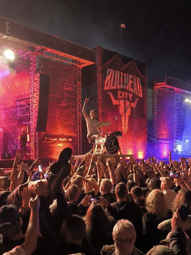 Szinte tapintható volt az a speciális életérzés, ami ezt a helyet és közeget jellemzi. És akkor nem is beszéltünk még a fesztiválon részt nem vevők, de Wackent felkereső ezrekről, akik korábbi Wacken fesztiválok pólóiban, adott esetben gyerekkocsit tologatva, vagy épp járókeretet pakolgatva merültek el a forgatagban, itt tényleg 1-től 100 évesig terjedt a sokadalom életkora. A lábak között utánfutós háromkerekű biciklivel tekerő gyerek kacsáztak és gyűjtögették a kiürült italos dobozokat, amivel darabonként 25 cent betétdíjat keresnek a srácok. Mint egy speciális falunapon, amelyen csak csupa metálszívű, fekete ruhás ember vesz részt. Hátborzongató volt, természetesen pozitív értelemben.