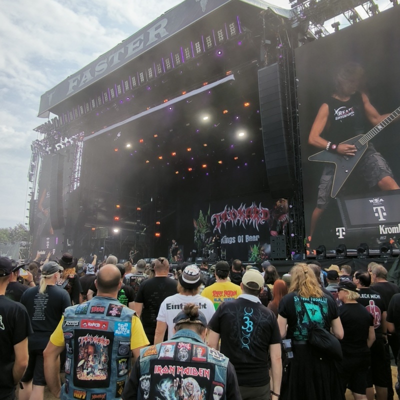Tekintve, hogy kb. háromra kerültünk hálózsákba nem ugrottunk ki kora reggel a sátorból. 11 fele megreggeliztünk, majd Zotya úgy döntött, hogy pihen még egy keveset, míg én a Faster színpadhoz indultam, ahol 11:30-kor a Tankard nyitotta a napot. Ugyan láttam őket két héttel korábban a Ruhrpott minifesztiválon, de annyira tetszett a műsoruk ott is, hogy szívesen újráztam.
