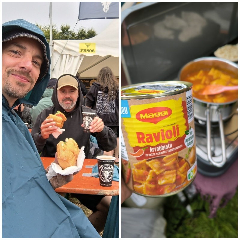 Éjszaka volt egy kis eső, ami reggelre is áthúzódott, így a pénteki nap délelőttjét elpiszmogtuk a reggelivel, zuhanyzással, pihenéssel, és egy előebéddel, amit a rendezők hoztak házhoz néhány Maggi Ravioli konzerv formájában, amit a sátrak között osztogattak.